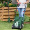 Cordless 18V mower and trimmer set for smaller urban gardens.