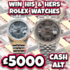 WIN HIS & HERS ROLEX DATE JUST MATCHING WATCHES OR £5000 CASH ALTERNATIVE 💷💷💷