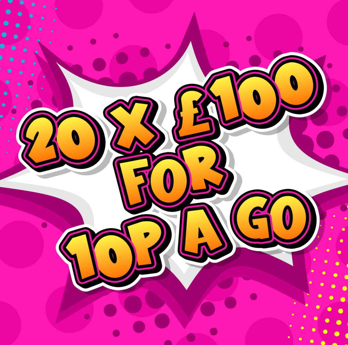 20 CHANCES AT WINNING £100 FOR 10P !